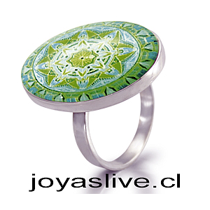 Anillo base de plata, mandala verde
