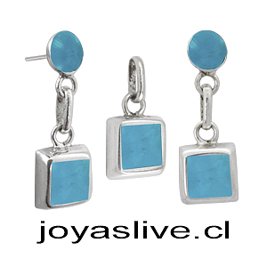 Conjunto plata chilena 950, Cuadrado Crisocola.