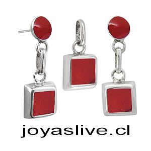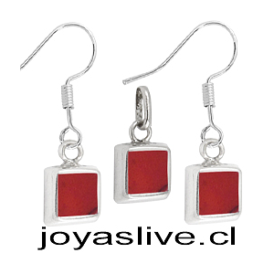 Conjunto plata chilena 950, Cuadrado Jaspe.
