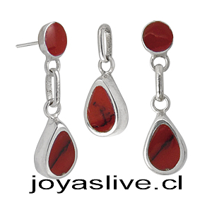 Conjunto plata chilena 950, Gotas Jaspe