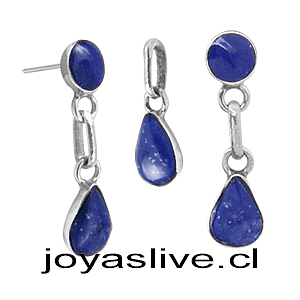 Conjunto plata chilena 950, Gotas Lapislazuli