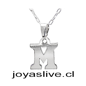 Dije letra M con cadena, plata chilena