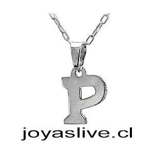 Dije letra P con cadena, plata chilena