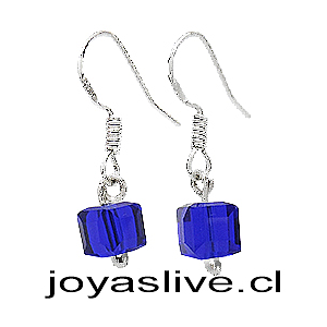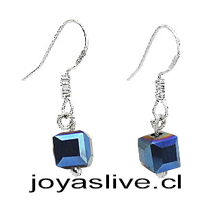 Aros de Plata 925 Cubos Transparentes Azul Metálico