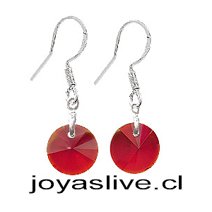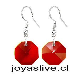 Aros de Plata 925 Cristal fino Octógono Rojo