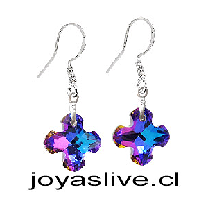 Aros de Plata 925 Cristal fino Cruz Morada Tornasol
