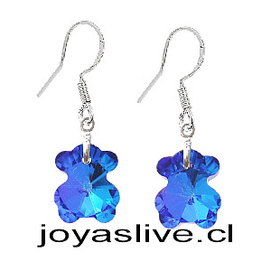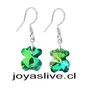 Aros de Plata 925 Cristal fino Oso Verde Tornasol