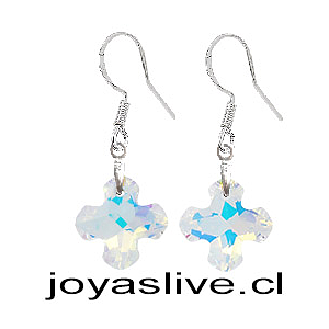 Aros de Plata 925 Cristal fino Cruz Transparente Tornasol