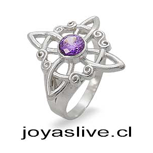 Anillo de Plata chilena 950 Nudo de Bruja Punto de Luz Morado Medida 16