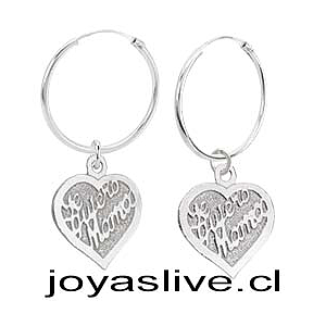 Aros Argollas de Plata chilena 950 Corazón Te Quiero Mamá