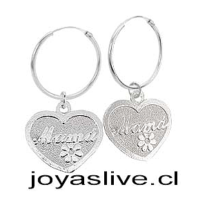 Aros Argollas de Plata chilena 950 Corazón Mamá
