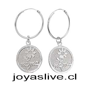 Aros Argollas de Plata chilena 950 Medalla Mamá