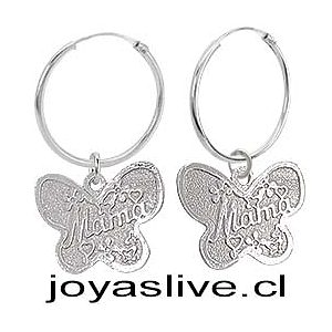 Aros Argollas de Plata chilena 950 Mariposa Mamá
