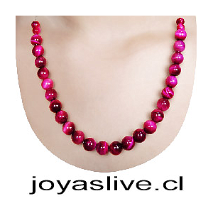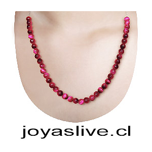 Collar de plata chilena 980, Ojo de tigre rosado, 50cm ( medida esfera #8 )