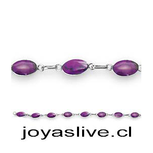 Pulsera plata chilena 950, Gema Sugilita con Gema Crisoprasa.