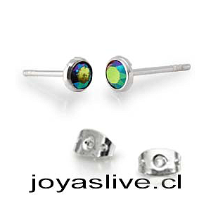 Aros de Plata chilena 950 Swarovski Tornasol Verde Espejo