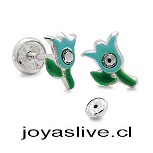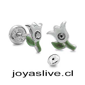 OFERTA Aros de Plata chilena 950 Tulipánes con cristales (Ofrecer color del catálogo o Rosado ) (sin cambio ni devolución)