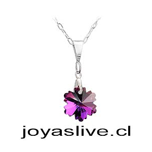 Collar Cristal fino Tornasol Rosado con plata chilena 950