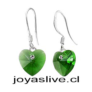 Aros de Plata chilena 950 Cristal fino Corazón Verde