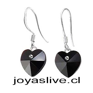 Aros de Plata chilena 950 Swarovski Corazón Negro