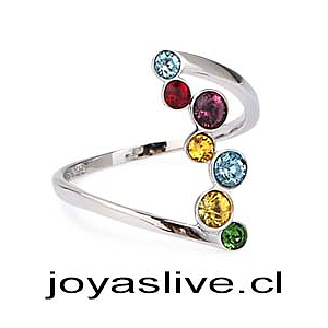 Anillo de plata Chilena 950, Cristal Swarovski Punto de colores. (10)