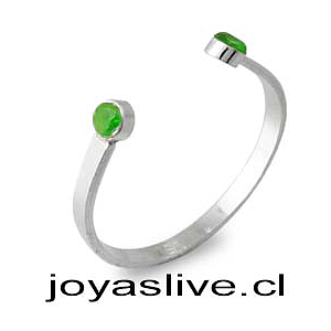 Anillo de Plata chilena 950 con Puntos de Luz Ajustable Verde