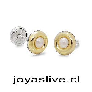 Aros de Oro 18 Kl. Torus con perla con plata y tornillos Seguros
